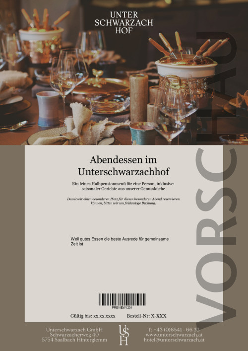 Ein feines Halbpensionmenü für eine Person, inklusive: